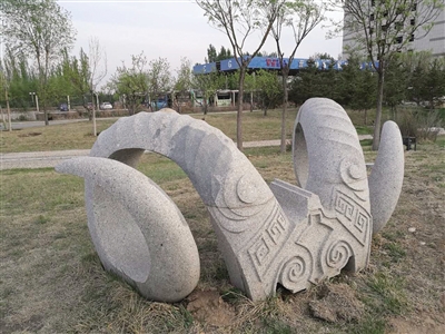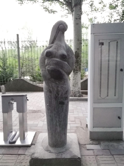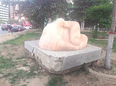 公園東路上一景觀(guān)雕塑布滿(mǎn)灰塵
